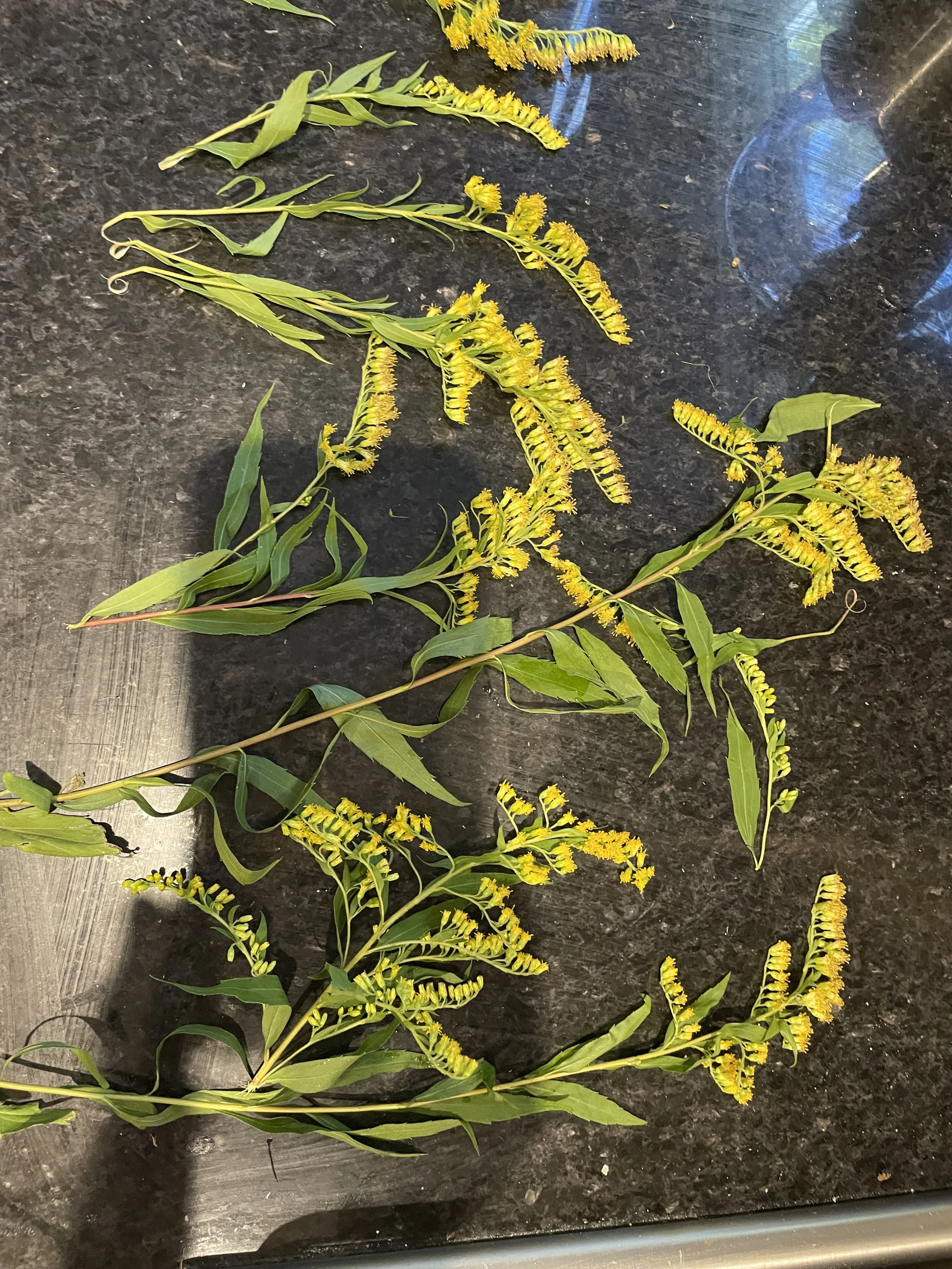 This is golden rod, and. A wild plant I had not seen before but it did hear about. I happened to drive past a small verge of tall bright yellow colourful plant as it was coming to the end of it flowering, and wondered if this was indeed golden rod. As any good forage know if you don’t know the plant take lots of photos and a small sample to try out.